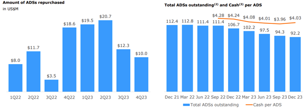 The investments are mainly simple time deposits or other bank products of which a majority is held in Hong Kong and Singapore meaning they’re relatively safe and poses very little impairment risk. The company has a share repurchase program which has repurchased $104 million over the last 2 years and has another ~$100 million remaining in its buyback program which represents 40% of the outstanding market cap.